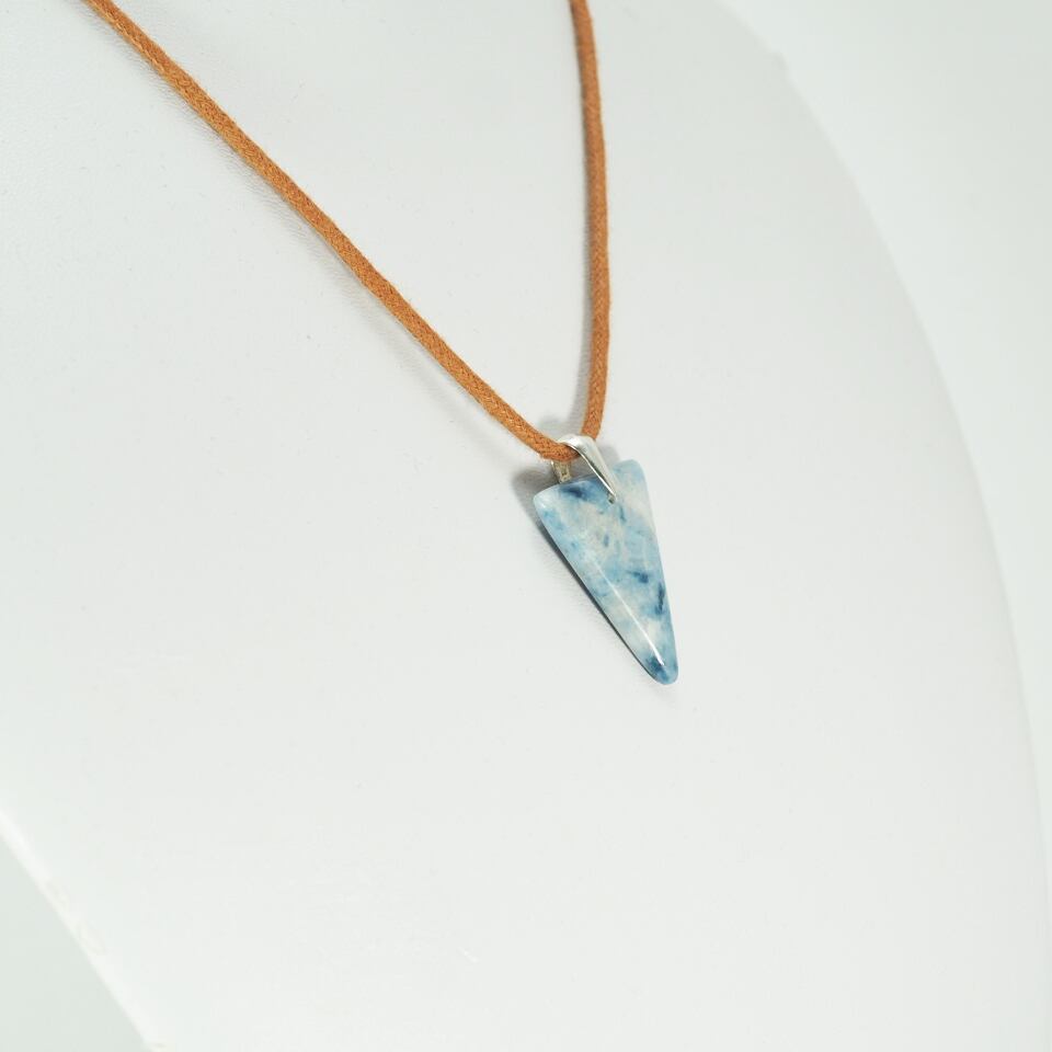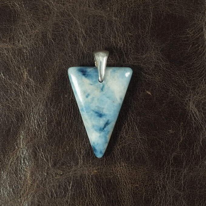 Triangle-shaped pendant top made of very rare blue jadeite from Itoigawa Japan.