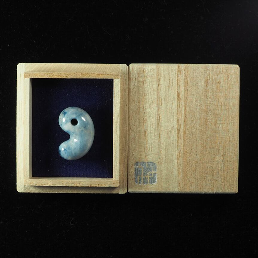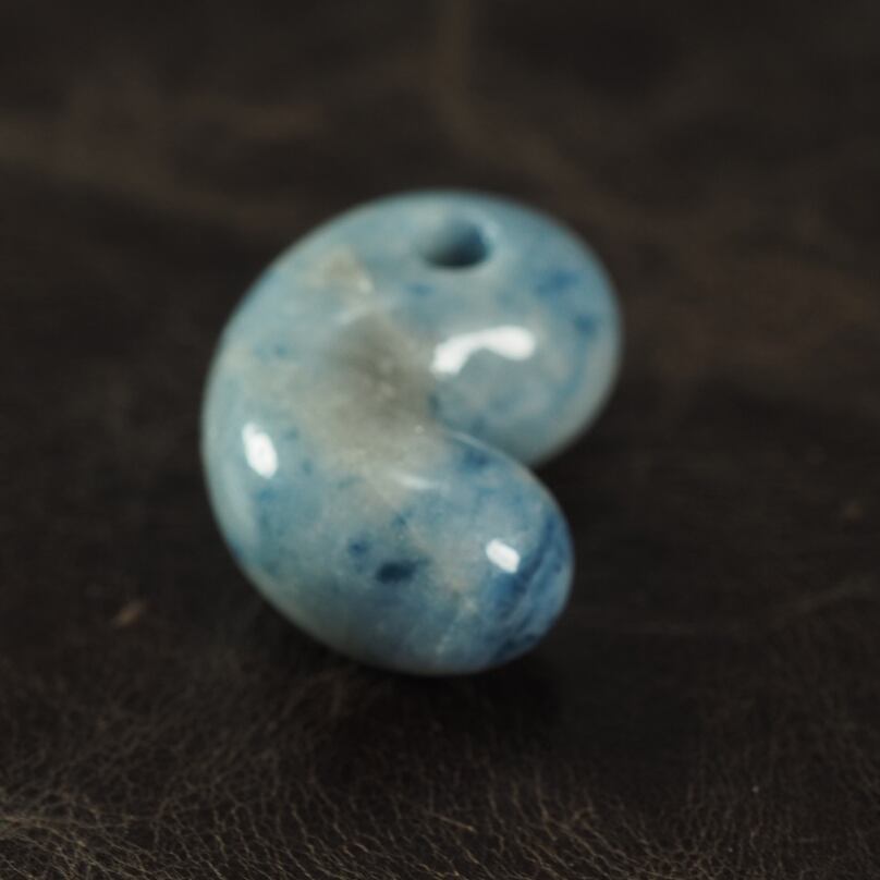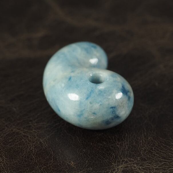 Mini Magatama made of very rare blue jadeite from Itoigawa Japan.