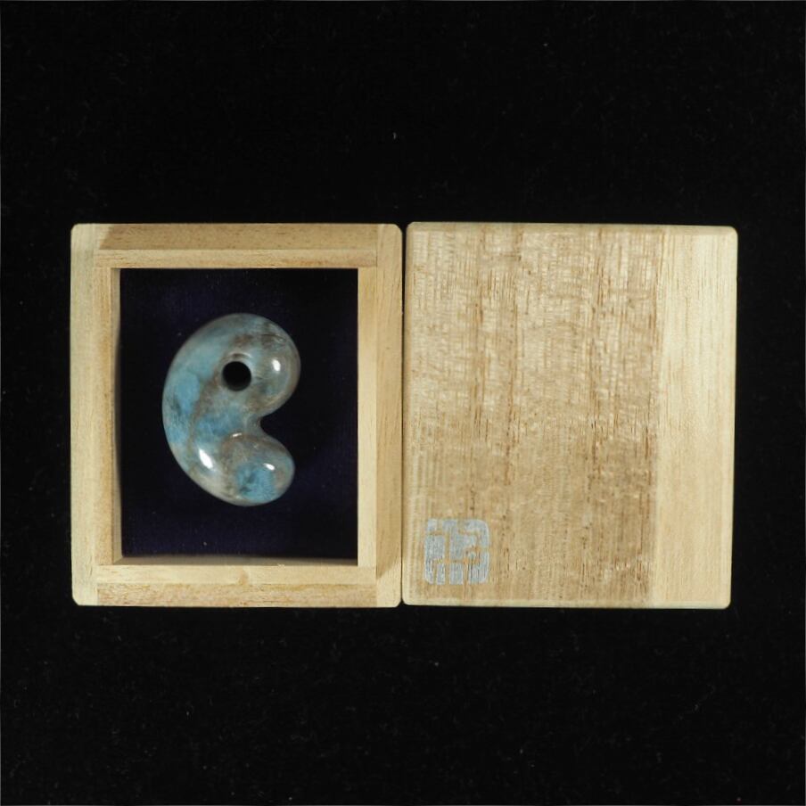 コン沢産の青翡翠を使った勾玉で