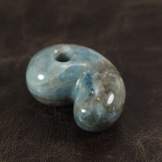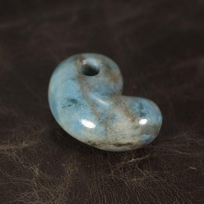 Magatama made of very rare blue jadeite from Itoigawa Japan.