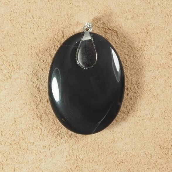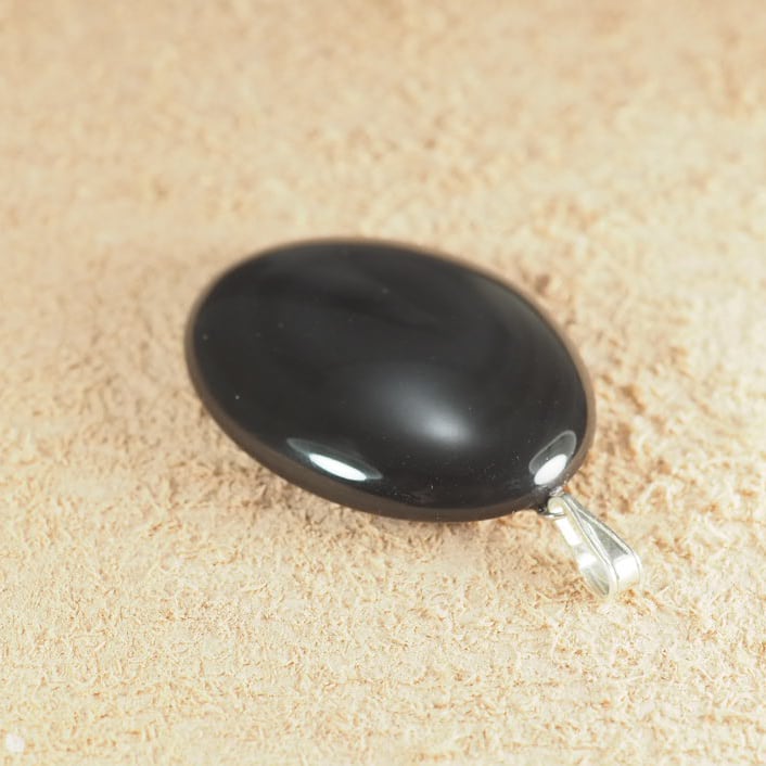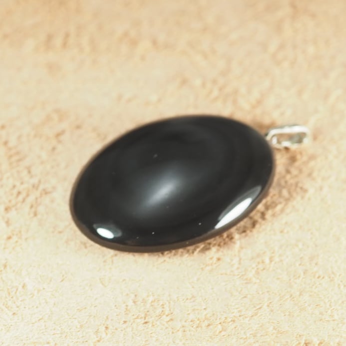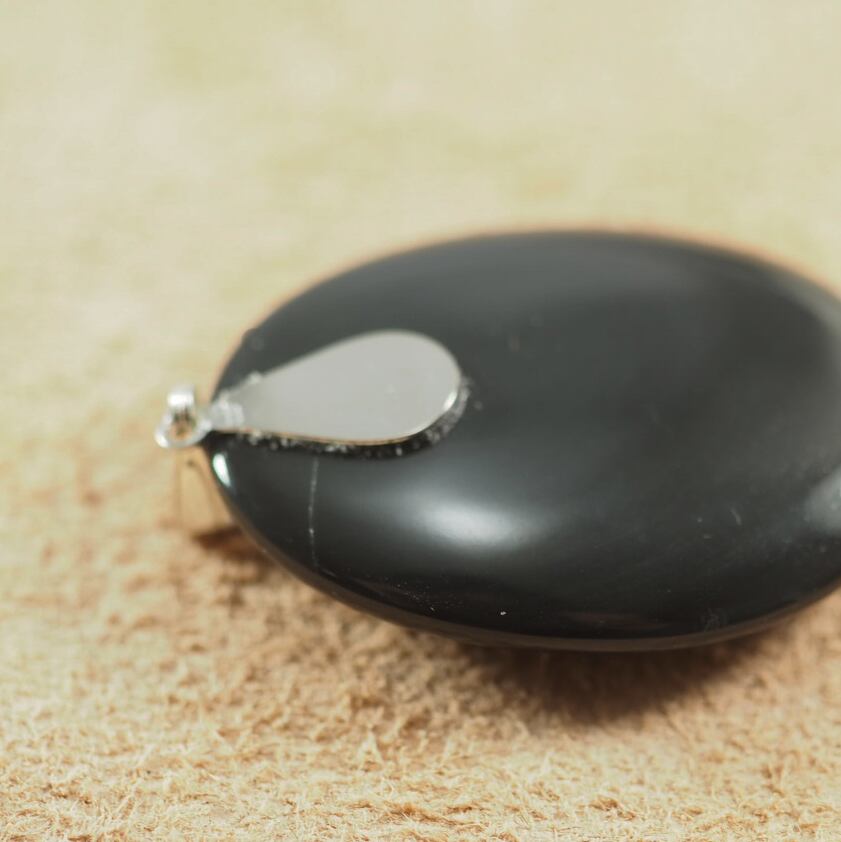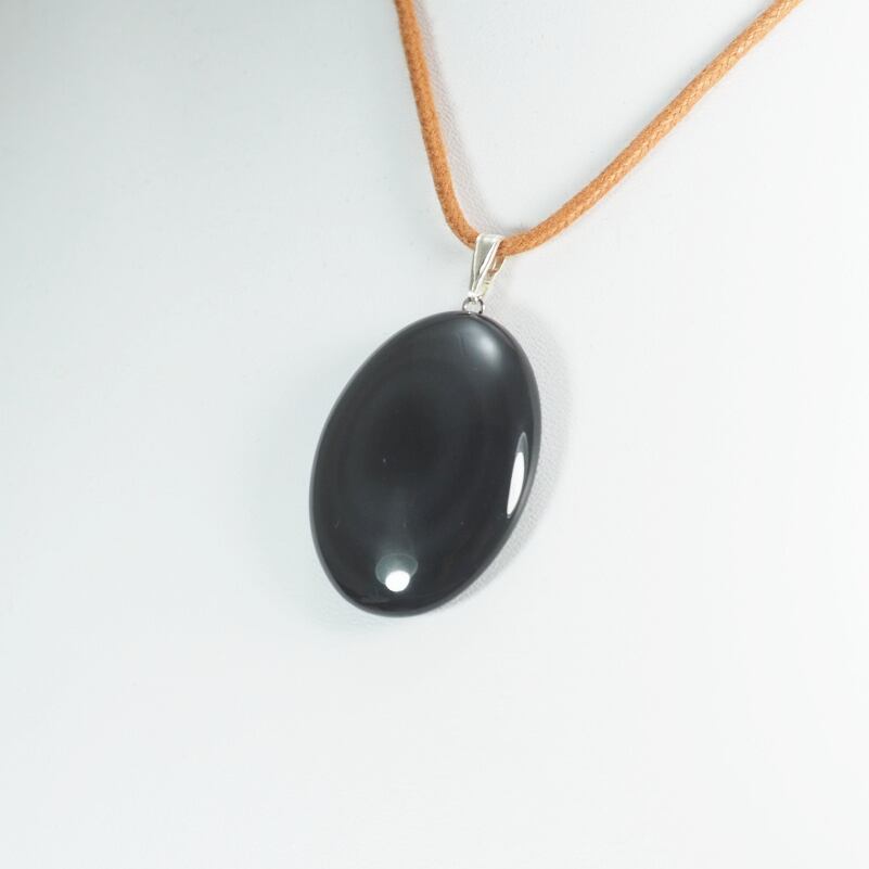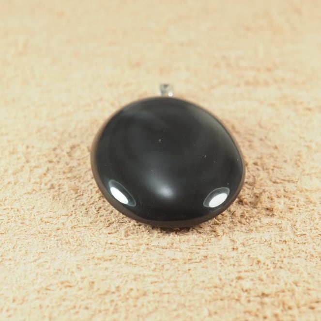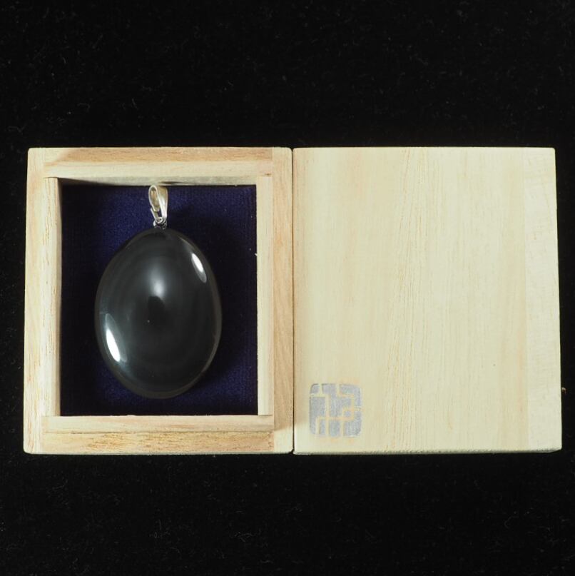 北海道十勝産の黒曜石(玲瓏)を使った卵型のペンダントトップです。
