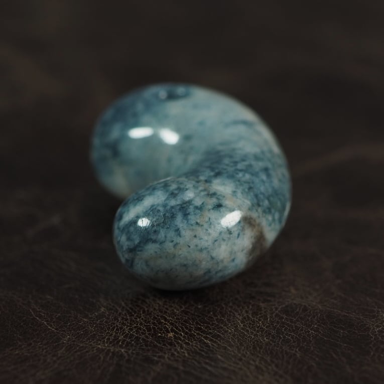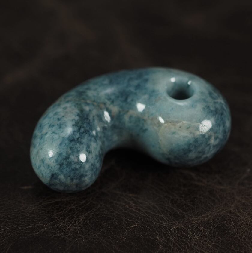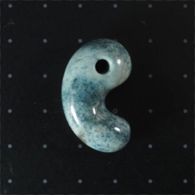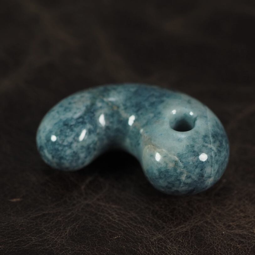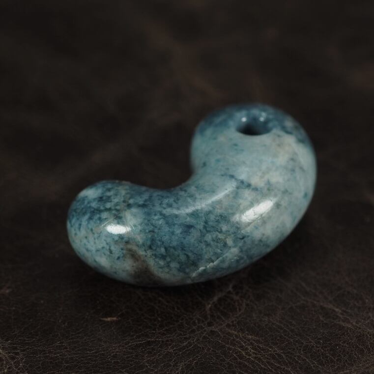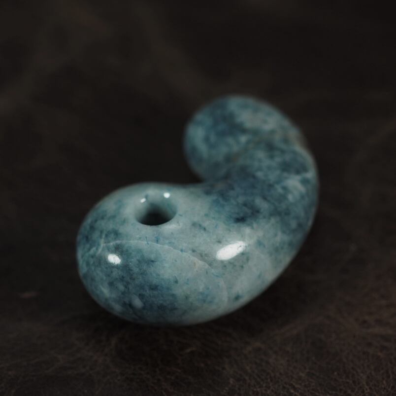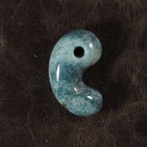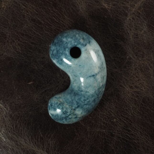 Magatama made of spotted blue jadeite from Itoigawa Japan.
