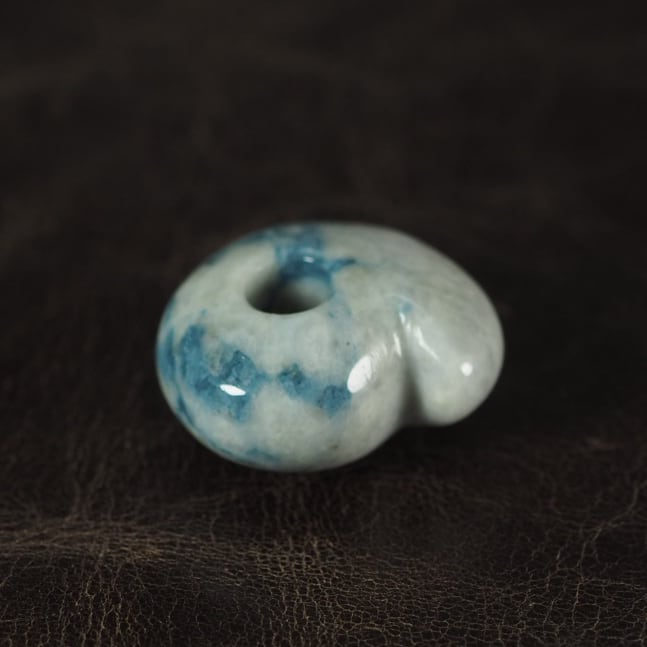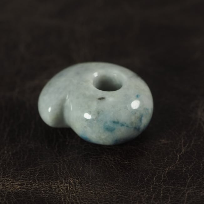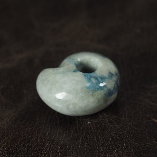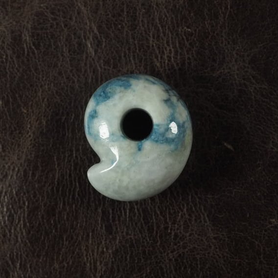 Mini Magatama made of blue jadeite from Itoigawa Japan.