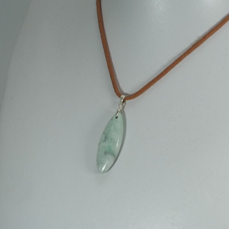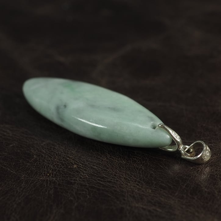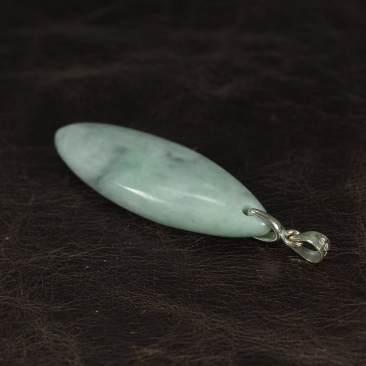 Pendant top made of pale green jadeite from Itoigawa Japan.
