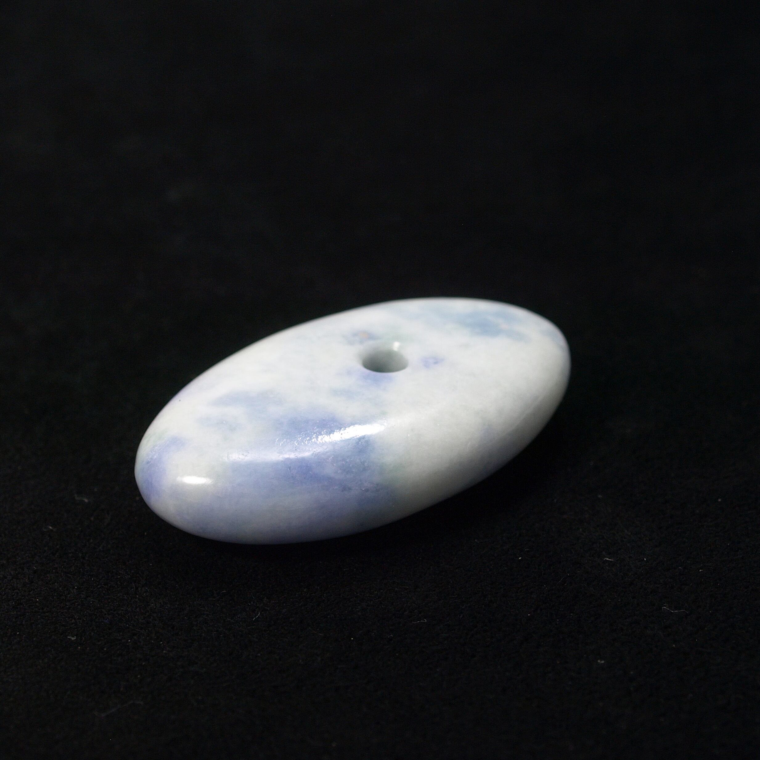 ラベンダー色が流れるように入った糸魚川翡翠のミニ大珠です。