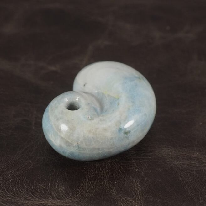 Magatama of original shape named Fuku-magatama, made of very rare blue jadeite from Itoigawa Japan.